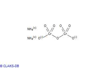 Text | CAS No: 7789-09-5 Chemical Name: Chromic acid (H2Cr2O7), diammonium salt Molecular Formula: Cr2H2O7.2H3N Assessed by NICNAS: No Associated Names: Ammonium bichromate url http://www.nicnas.gov.au/Industry/AICS/ViewChemical.asp?Chemical_Id=11394 | |