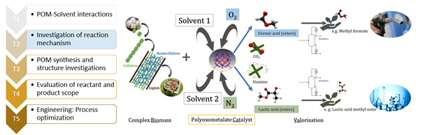 The BioValCat project (Enhanced Biomass Valorisation by Engineering of Polyoxometalate Catalysts) is researching ways to convert biomass into lactic acid or formic acid using POM catalysts (polyoxometalates).