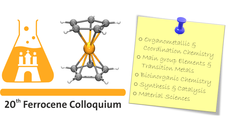 It is a great pleasure for us to invite you, on behalf of the Institute of Inorganic Chemistry, to the Ferrocene Colloquium. The 20th edition of this conference will take place on March 26–27 at the University of Hamburg.